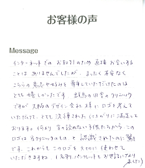 過去にご利用いただいたお客様の直筆のメッセージをご紹介いたします。画像をクリックすると拡大表示されます。